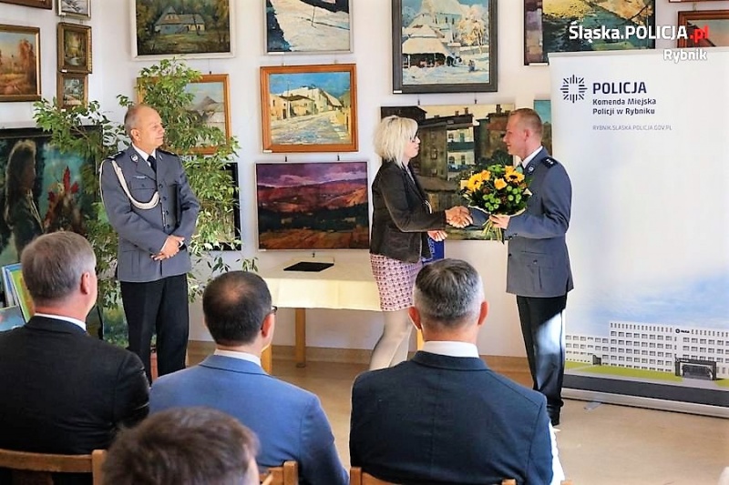 Uroczyste wprowadzenie odbyło się wczoraj, w Śląskiej Galerii Malarstwa „Jan” w Jankowicach. Ceremonia rozpoczęła się od meldunku złożonego Komendantowi Miejskiemu Policji w Rybniku. Następnie odczytano decyzję personalną o powołaniu kom. Tomasza Hynka, na stanowisko Komendanta Komisariatu Policji w Rybniku-Boguszowicach. Po odczytaniu decyzji personalnej, insp. Teofil Marcinkowski przedstawił nowego komendanta komisariatu i życzył powodzenia oraz wielu sukcesów zarówno w życiu zawodowym, jak i osobistym. Kolejnym elementem było wystąpienie nowego szefa komisariatu w Boguszowicach, który podziękował Panu Komendantowi za docenienie swojej dotychczasowej służby i wyróżnienie powołaniem na stanowisko. W uroczystości, oprócz policjantów, udział wzięli przedstawiciele władz samorządowych z Zastępcą Prezydenta Miasta Rybnika na czele, a także przedstawiciele instytucji na co dzień współpracujących z Policją. Przybyli goście złożyli gratulacje nowemu komendantowi. Uroczystość zakończyła się złożeniem meldunku.
