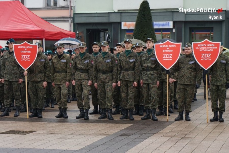 Trzystu uczniów klas pierwszych z wszystkich szkół mundurowych zrzeszonych w Zakładzie Doskonalenia Zawodowego w Katowicach, złożyło dziś uroczyste ślubowanie na rybnickim rynku. Wśród nich byli też młodzi mundurowi z Rybnika. W uroczystości udział wzięli przedstawiciele służb mundurowych, przedstawiciele lokalnych samorządów, oświaty oraz rodzice uczniów. Komendę Miejską Policji w Rybniku reprezentował szef rybnickich stróżów prawa – insp. Teofil Marcinkowski. Uroczystość została objęta Honorowym Patronatem Prezydenta Miasta Rybnika i organizowana była we współpracy z Urzędem Miasta Rybnik oraz Wojskową Komendą Uzupełnień w Rybniku.
