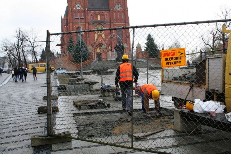Rozpoczęły się prace związane z nasadzeniami drzew w podłożu strukturalnym na Placu Jana Pawła II, w sąsiedztwie rybnickiej bazyliki św. Antoniego.
