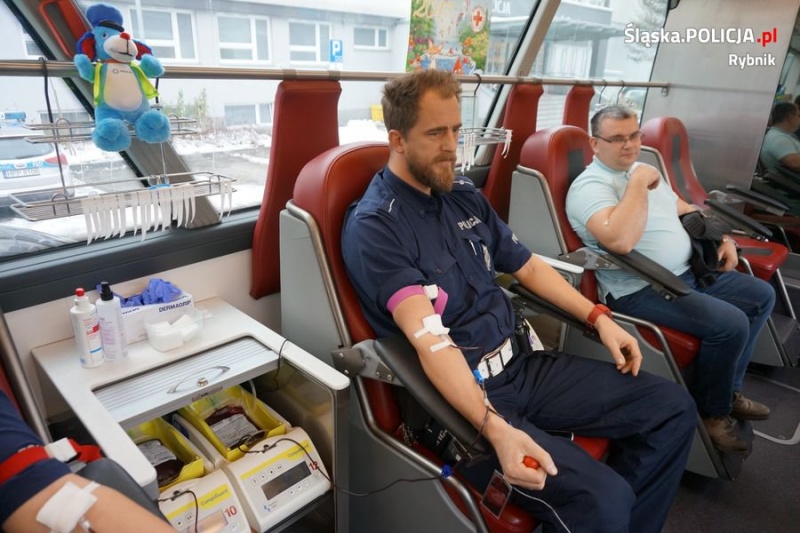 Już kolejny raz mundurowi wsparli Mikołajkową Akcję Krwiodawstwa. Przed wejściem do rybnickiej komendy zaparkował ambulans Regionalnego Centrum Krwiodawstwa i Krwiolecznictwa z Raciborza, w którym zebrano łącznie ponad 13 litrów krwi. Zorganizowano również zbiórkę słodyczy dla najmłodszych.
