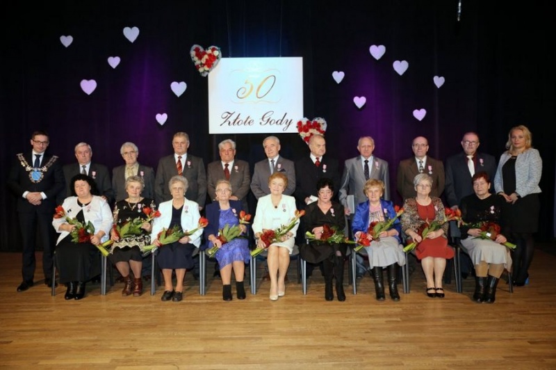 Złoci jubilaci świętowali 6 marca podczas spotkania, które odbyło się w sali widowisko-koncertowej Ogniska Pracy Pozaszkolnej Zespołu „Przygoda”. Na uroczystość zaproszeni zostali: Alina i Ryszard Biela, Teresa i Józef Dąbkowscy, Irena i Edmund Duda, Elżbieta i Marian Harasimiuk, Barbara i Ewald Maciączyk, Krystyna i Edward Ostarek, Klaudia i Henryk Sobik, Narcyza Szczepanik-Piszczelok i Jan Piszczelok, Anna i Jan Zimni.