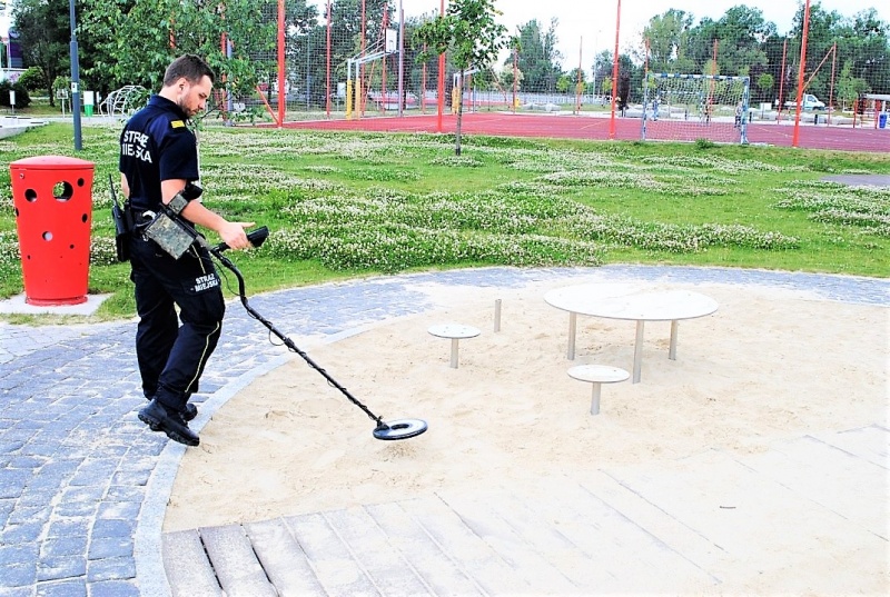 Warto wspomnieć, że kontrole były prowadzone przy wykorzystaniu wykrywacza metali. W ten sposób strażnicy sprawdzali, czy w piaskownicach nie ma niebezpiecznych, metalowych elementów takich jak kapsle, igły, czy fragmenty blach, gwoździ wkrętów itp. Bezpieczeństwo dzieci na placach zabaw zależy od właściwie dobranego sprzętu, jego stanu technicznego oraz zapewnienia regularnych kontroli przez administratora.