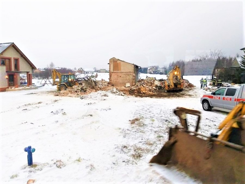 - przeszukaniu gruzowiska przez Specjalistyczną Grupę Poszukiwawczo – Ratowniczą z Jastrzębia - Zdroju przy pomocy psów ratowniczych, które nie potwierdziły obecności innych osób żywych,