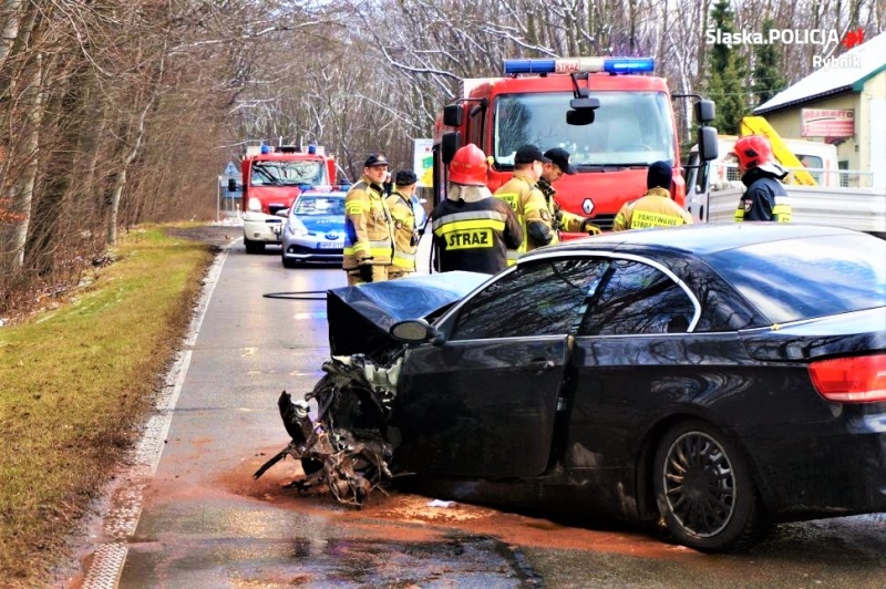 Do wypadku doszło wczoraj, około godziny 11.15, w Rybniku na ulicy Raciborskiej. Jak wstępnie ustalili policjanci z wydziału ruchu drogowego rybnickiej komendy, kierujący bmw, 27-letni mieszkaniec powiatu wodzisławskiego, jechał w kierunku Raciborza. Na wysokości skrzyżowania z ulicą Sportową, z nieustalonych przyczyn zjechał na przeciwny pas ruchu, gdzie zderzył się czołowo z jadącym z naprzeciwka samochodem marki Toyota Avensis, którym podróżowała 4-osobowa rodzina. Aby wyciągnąć poszkodowanych z pojazdu, potrzebna była pomoc strażaków. 28-letni kierowca toyoty, 25-letnia pasażerka, 3-letni chłopiec i roczna dziewczynka zostali zabrani przez pogotowie do rybnickiego szpitala. Dokładne okoliczności wypadku zostaną wyjaśnione w prowadzonym przez rybnickich mundurowych postępowaniu przygotowawczym.