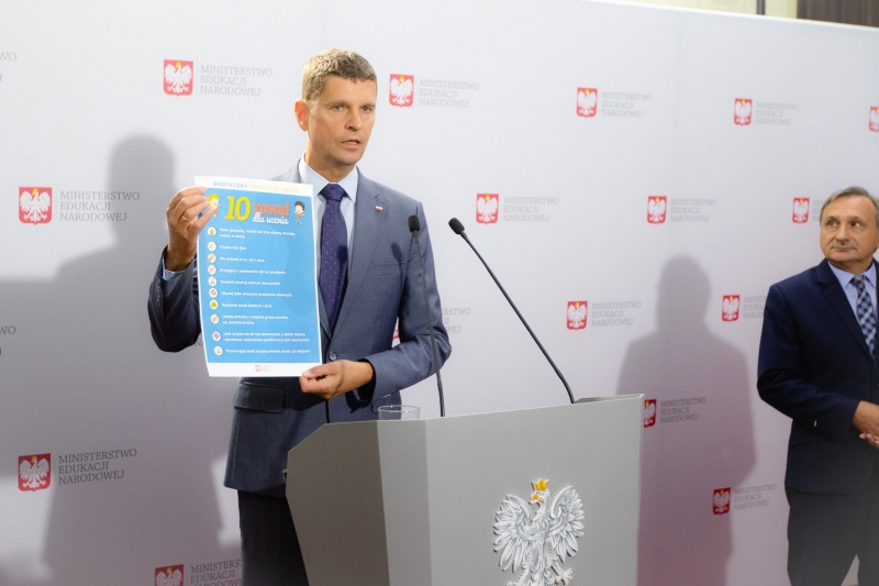 12 sierpnia br. w Ministerstwie Edukacji Narodowej odbyła się konferencja prasowa, w której udział wzięli: Dariusz Piontkowski Minister Edukacji Narodowej i Izabela Kucharska Zastępca Głównego Inspektora Sanitarnego.