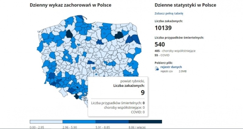 9 nowych zakażeń koronawirusem wykazano w ostatniej dobie dla powiatu rybnickiego. Rząd uruchomił nowy system raportowania.