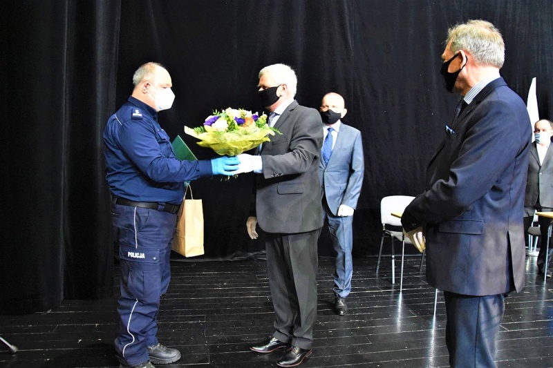 Podziękowania i gratulacje na ręce komendantów złożyli także Przewodniczący Rady Miejskiej Bernard Strzoda oraz Przewodniczący Komisji Prawa, Porządku Publicznego i Współpracy z Samorządami Rady Miejskiej Waldemar Mitura.