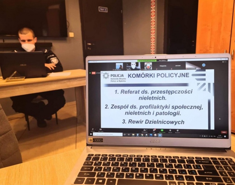 Tym razem sierż. Kamil Kazek wykorzystując formę zdalnej komunikacji przeprowadził konferencję dla przedstawicieli placówek oświatowych, do których uczęszczają dzieci rodzin obcokrajowców. Profilaktyk z rybnickiej komendy omówił zagrożenia związane z przemocą rówieśniczą, między innymi spowodowaną stereotypami i uprzedzeniami oraz wynikające z niej konsekwencje i zagrożenia dla dzieci i młodzieży w wieku szkolnym.