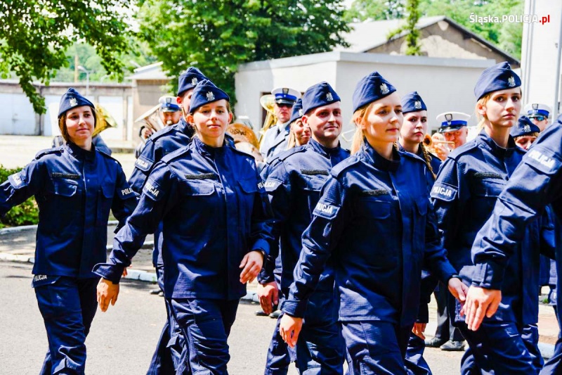 Kolejnym punktem uroczystości była ceremonia ślubowania 102 nowych policjantów, które przyjął Komendant Wojewódzki Policji w Katowicach nadinsp. Roman Rabsztyn. Wśród nowo przyjętych mundurowych jest 20 kobiet. Niebawem wszyscy rozpoczną kurs podstawowy w szkołach policyjnych. Po zdobyciu podstawowej wiedzy teoretycznej oraz umiejętności praktycznych zasilą szeregi jednostek garnizonu śląskiego.