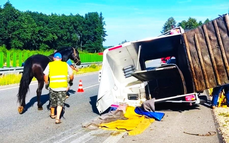 Przyczepa z koniem przewróciła się na DW 935