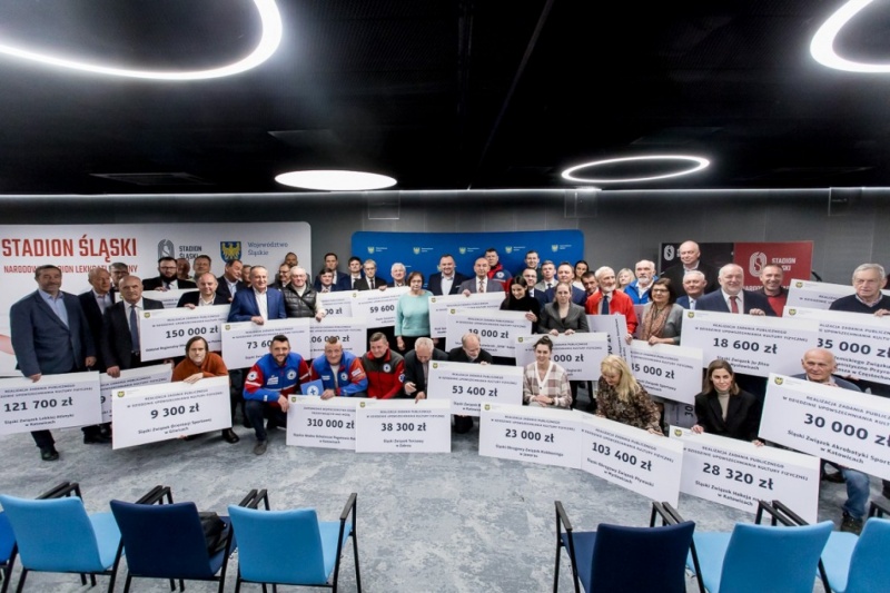 - Kwota ponad 7,1 mln zł przeznaczona na upowszechnianie kultury fizycznej i bezpieczeństwa publicznego zostanie rozdysponowana pomiędzy 71 podmiotów reprezentujących niezwykle szeroki wachlarz właściwie wszystkich dyscyplin sportowych w naszym regionie. Ważne jest też miejsce, gdzie przekazujemy czeki – Stadion Śląski to kolebka regionalnego sportu, obiekt o szczególnym dla nas znaczeniu, na którym przez dekady kibice byli świadkami wydarzeń, które zapisały się złotymi zgłoskami na kartach historii. Przekazane dziś środki to pieniądze zawsze dobrze wydane. Trafiają na szkolenie młodzieży, zakup sprzętu, organizację szkoleń i obozów sportowych. Jestem przekonany, że w jakiejś mierze także dzięki temu wsparciu usłyszymy dużo dobrego o wychowankach klubów i stowarzyszeń sportowych. Trzymamy kciuki za ich przyszłe sukcesy – komentuje marszałek Jakub Chełstowski.