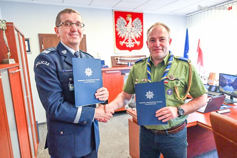 Komendant Wojewódzki Policji w Katowicach nadinspektor Roman Rabsztyn oraz komendant Chorągwi Śląskiej Związku Harcerstwa Polskiego harcmistrz Marcin Różycki odnowili porozumienie o współpracy. Podczas spotkania w siedzibie śląskiej Policji Komendanci podpisali dokument dotyczące współpracy w zakresie wspierania własnych przedsięwzięć profilaktycznych wobec dzieci, młodzieży i dorosłych, ukierunkowanych na poprawę bezpieczeństwa i porządku publicznego oraz zapobieganie zjawiskom patologicznym.