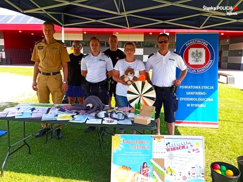 Podczas spotkań z dziećmi i młodzieżą mundurowi oraz przedstawiciele Powiatowej Stacji Sanitarno-Epidemiologicznej w Rybniku przypomnieli uczestnikom o zasadach bezpiecznych zabaw nad wodą, w tym o zakazie kąpieli na niestrzeżonych akwenach wodnych. Działania odbyły się w ramach akcji informacyjno-edukacyjnej "Kręci mnie bezpieczeństwo nad wodą". Policjanci zachęcili również do udziału w konkursie plastyczno-filmowym - „Artystyczny przeWODNIK", którego tematem jest zobrazowanie bezpiecznego sposobu zachowania osób przebywających w wodzie lub nad wodą, promocja zdrowego i aktywnego trybu życia oraz popularyzacja wśród dzieci i młodzieży wiedzy na temat bezpiecznych zachowań w wodzie i nad wodą. Najmłodsi wzięli udział w grach i zabawach oraz uczestniczyli w konkursach dotyczących ogólnie pojętego bezpieczeństwa.