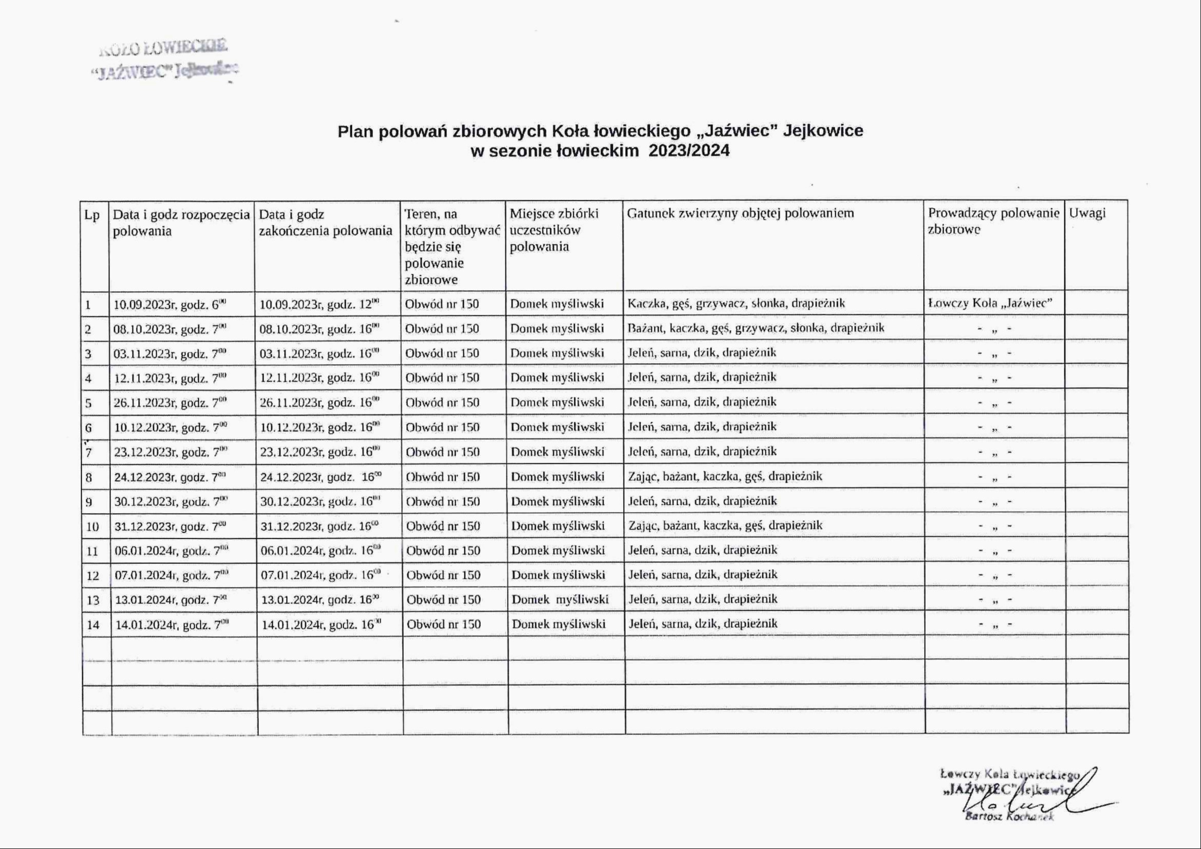 Plan polowań znajdziesz także TUTAJ.