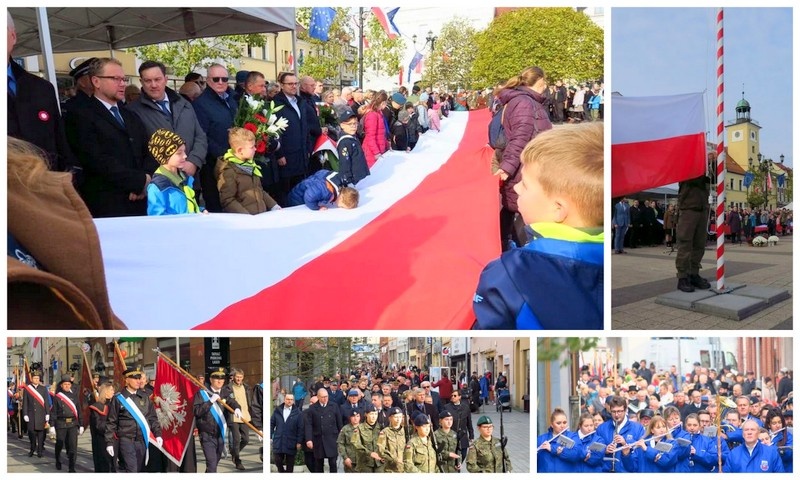 Po ceremonii i złożeniu hołdu przed pomnikiem Jana Pawła II uczestnicy obchodów - poczty sztandarowe, oficjalne delegacje, harcerze i mieszkańcy miasta - przemaszerowali na rynek.