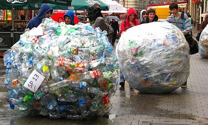 Konkurs ekologiczny „Superbohater dla przyrody” zakończył się efektownym przetoczeniem kul zbudowanych z plastikowych butelek z rybnickiego rynku na boisko Gimnazjum nr 1 w Rybniku.