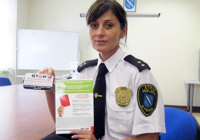 Strażnicy z Rybnika przeprowadzają akcję informacyjno-prewencyjną STOP 18. Rozdając ulotki informacyjne, sprawdzają poziom świadomości właścicieli sklepów o prawach i obowiązkach związanych ze sprzedażą wyrobów tytoniowych. Jak dotąd odwiedzili 73 punkty w mieście.