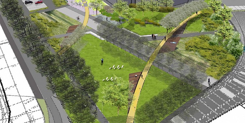 Pomysł na zmodernizowanie i uatrakcyjnienie tego przedwojennego skweru zakłada podział terenu na strefę rekreacyjno-widokową, łączącą zieleń z fontanną oraz strefy rekreacji czynnej (nowoczesny plac zabaw z elementami wspinaczkowymi) i biernej (tarasy z drewna kompozytowego, podświetlane siedziska, leżaki).