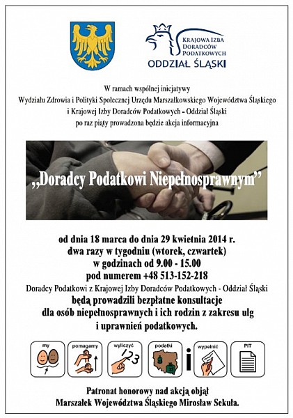 „Doradcy Podatkowi Niepełnosprawnym” to piąta tego typu wspólna akcja Urzędu Marszałkowskiego Województwa Śląskiego oraz Samorządu Doradców Podatkowych - Oddział Śląski.