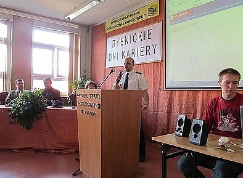Wczoraj w ramach Dni Kariery przedstawiciele Komendy Miejskiej Policji w Rybniku mieli okazję spotkać się z młodzieżą klas maturalnych. Specyfikę pracy w służbach mundurowych oprócz Policji prezentowały Straż Pożarna, Wojskowa Komenda Uzupełnień, Nadleśnictwo oraz KWK Jankowice.
