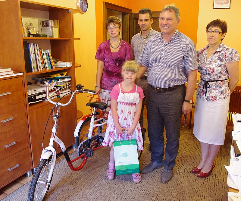 W miniony wtorek w Urzędzie Gminy i Miasta Czerwionka-Leszczyny Burmistrz W. Janiszewski wraz z przedstawicelem Fundacji Eco Textil wręczył wyjątkowy upominek dla dziesięcioletniej Wiktorii Groborz ze Szczejkowic. Był to rower trójkołowy, przystosowany do użytku osób niepełnosprawnych.