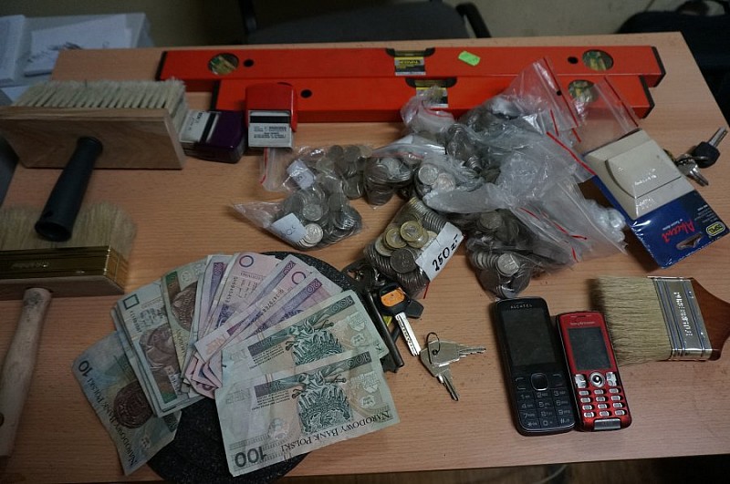 Wczoraj ok. 2.30 policjanci patrolujący teren Niedobczyc, zauważyli dwóch mężczyzn idących m.in. z kasą fiskalną pod ręką. Mundurowi natychmiast sprawdzili co jeszcze kryje się w bagażach podejrzanych. Podczas kontroli policjanci oprócz kasy znaleźli sporą ilość gotówki w bilonach, narzędzia budowlane, telefony komórkowe. Część pieniędzy jeden z zatrzymanych ukrył w skarpecie. Jak się okazało, wszystkie te przedmioty pochodziły z włamania do sklepu z artykułami budowlanymi mieszczącego się w pobliżu ul.Górnośląskiej. Sprawcy weszli do sklepu wyłamując drzwi piwniczne. Wszystkie skradzione przedmioty zostały odzyskane i przekazane prawowitym właścicielom, ich wartość to ponad 2 tys. zł. Zatrzymani to dwaj mieszkańcy Rybnika w wieku 26 i 30 lat. Obaj odpowiedzą za kradzież z włamaniem.