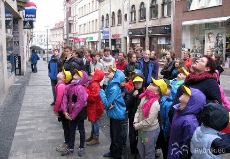 Pierwszym punktem edukacyjnego spaceru był oczywiście rybnicki rynek – od dawnych czasów centralny punkt miasta, miejsce ważne ze względu na znajdujący się tu zabytkowy budynek ratusza. Potem uczestnicy plenerowej lekcji udali się w kierunku ulicy Jana III Sobieskiego.