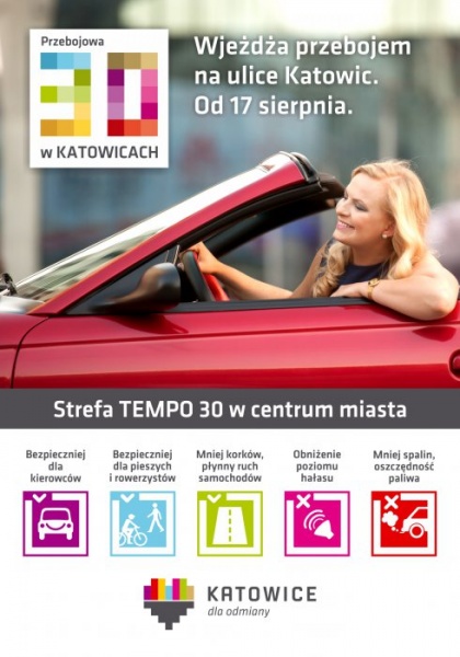 Uwaga kierowcy! W poniedziałek w Katowicach rusza Strefa Tempo 30, czyli obszar w mieście, na którym dopuszczalna prędkość jest ograniczona do 30 km/h.