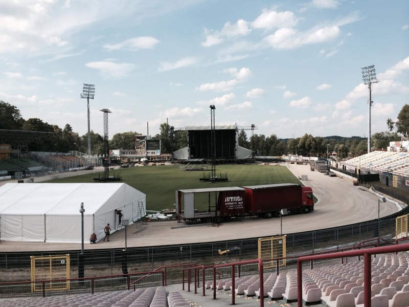 Scena na której wystąpi Linkin Park będzie ważyła ponad 90 ton! Końca dobiega również proces opłotowania terenu - obecnie zamontowano już pół kilometra płotów (ich łączna długość wyniesie 1.600 m). Ponadto, dziś rozpoczęto również budowę namiotu VIP oraz wyposażanie garderób dla artystów. Na stadion dotarło również zabezpieczenie murawy (7.500 metrów kwadratowych).