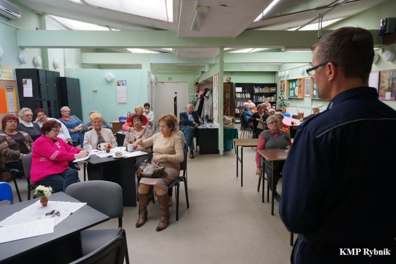 „Bezpieczny Senior” to hasło debaty zorganizowanej przez Komendę Miejską Policji w Rybniku oraz Uniwersytet III Wieku, która odbyła się we wtorek w siedzibie uniwersytetu. Na początku spotkania aspirant sztabowy Dariusz Piotrowski zajmujący się profilaktyką społeczną, omówił z seniorami problematykę bezpieczeństwa osób starszych m.in. w miejscu zamieszkania, środkach komunikacji miejskiej. Odpowiadając na pytania dotyczące mechanizmów dokonywania oszustw znaną metodą na wnuczka, policjanta, gazownika, energetyka, pracownika wodociągów lub innej instytucji, policjant przekazał informacje jak skutecznie zapobiegać takim sytuacjom. Nie zabrakło również nawiązań do trwającej w naszym województwie kampanii społecznej „Nie reagujesz - akceptujesz”. Aby uświadomić seniorom skalę problemu dotyczącego przestępczości na szkodę osób starszych zaprezentowano film „Nie każdemu warto ufać”. Na zakończenie aspirant sztabowy Dariusz Piotrowski podziękował wszystkim za przybycie, aktywny udział w debacie i zaprosił do udziału w następnych spotkaniach. W swoim wystąpieniu podkreślił również, iż wszystkie problemy i postulaty zgłaszane przez zebranych będą dokładnie przeanalizowane i staną się podstawą do działań podejmowanych przez rybnicką policję.