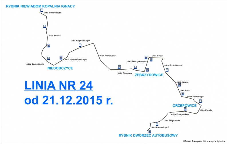 Została ona oznaczona numerem 24 i łączyć bęzie dworzec autobusowy z dzielnicami Orzepowice, Zebrzydowice, Niedobczyce i Niewiadom.
