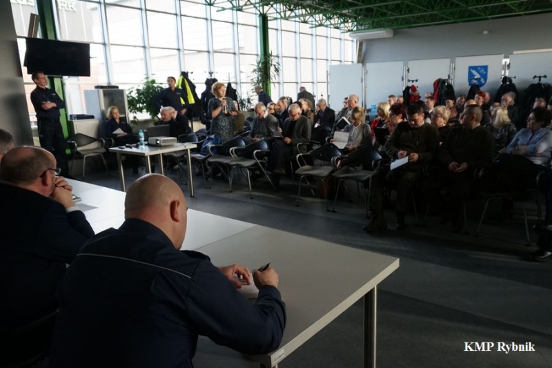 Po tej prezentacji, Pan Komendant omówił i przedstawił główne założenia utworzenia map zagrożeń bezpieczeństwa, jej idee oraz koncepcje. Podkreślił, że warunkiem poprawy skuteczności działań w zakresie likwidacji zagrożeń jest skuteczna współpraca pomiędzy wszystkimi podmiotami zaangażowanymi w realizację zadań na rzecz bezpieczeństwa obywateli. W utworzeniu map zagrożeń znaczący wpływ ma także opinia lokalnej społeczności. Rybnicka Policja bardzo szeroko otwiera się na kontakt ze społeczeństwem - zaplanowano szereg tego rodzaju spotkań nie tylko na terenie miasta ale i powiatu. To właśnie opinie społeczne będą miały decydujący wpływ na ostateczny kształt projektowanego narzędzia informatycznego, służącego do prezentacji informacji o stanie bezpieczeństwa. Bardzo ważnym elementem w tworzeniu tego istotnego społecznie narzędzia, jest dyskusja i płynące z niej wnioski, dlatego kolejnym etapem spotkania była otwarta dyskusja. Każdy z zaproszonych gości, miał możliwość przedstawić własne uwagi i spostrzeżenia. Wnioski z analizy uzyskanych informacji, posłużą policjantom wydziału prewencji do opracowania map zagrożeń dla miasta Rybnika.