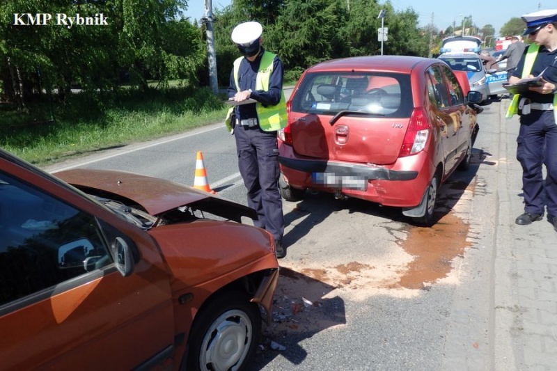 Parę minut po godzinie 9.00 w Rybniku na ulicy Zebrzydowickiej doszło do zderzenia czterech samochodów. Jak ustalili policjanci wydziału ruchu drogowego rybnickiej komendy, kierująca hyundaiem, 64-letnia mieszkanka Szczerbic, nie zachowała bezpiecznej odległości od poprzedzającego pojazdu i najechała na tył toyoty. Siła uderzenia spowodowała, że toyota najechała na tył stojącego forda. Jadący w tym samym kierunku 62-letni kierowca daewoo, nie zdążył wyhamować i najechał na tył hyundaia. Na szczęście nikt z uczestników zdarzenia nie odniósł poważniejszych obrażeń. Wszyscy kierowcy byli trzeźwi. Kierująca hyundaiem oraz kierowca daewoo, zostali ukarani mandatami karnym za spowodowanie kolizji drogowej.