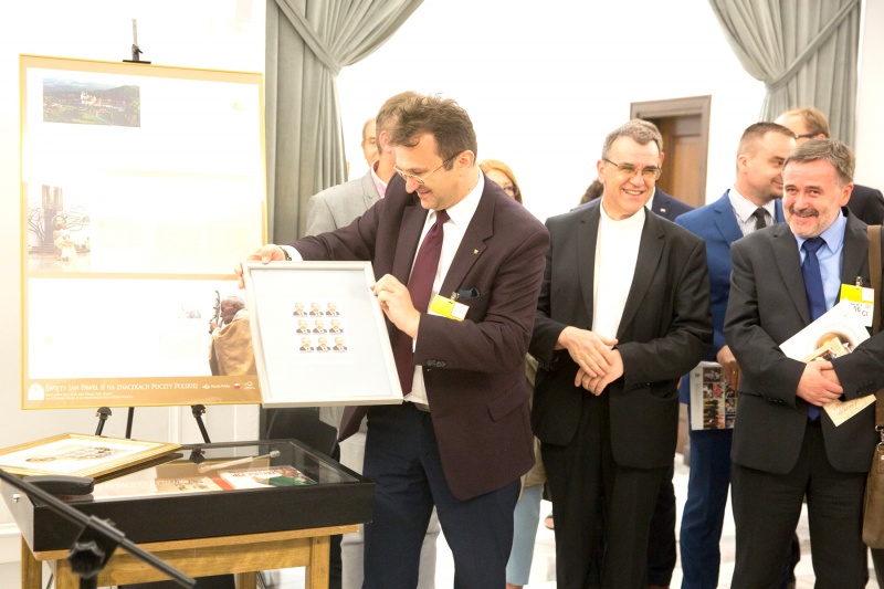 Swoje eksponaty wystawili Poczta Polska, Mennica Polska, Muzeum „Dom Rodzinny Jana Pawła II” w Wadowicach oraz Poseł Czesław Sobierajski. Szczególnym eksponatem - relikwią na wystawie była sutanna Ojca Świętego Jana Pawła II używana w czasie pierwszej pielgrzymki do Polski w 1979 r. Podczas otwarcia uczestniczyło wiele znamienitych gości wśród nich kapelan Prezydenta RP Andrzeja Dudy, ks. Zbigniew Kras oraz przedstawiciele rządu i parlamentu.
