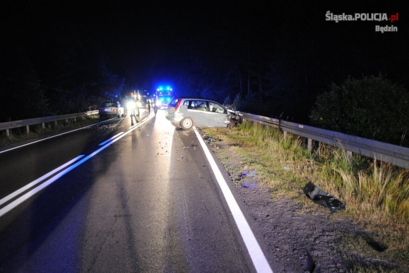 Również tego samego dnia około godz. 20.30 na drodze krajowej nr 78 w okolicy Siewierza doszło do kolejnego tragicznego w skutkach wypadku. Jak wynika ze wstępnych ustaleń policjantów, kierujący motocyklem bmw 43-letni mieszkaniec Cieszyna jechał w kierunku Boguchwałowic wraz z dwójką innych motocyklistów. Mężczyzna rozpoczął wykonywanie manewru wyprzedzania innego pojazdu w miejscu niedozwolonym. Jego motocykl uderzył czołowo w nadjeżdżającego z przeciwka forda fusion, za kierownicą którego siedziała 30-letnia mieszkanka Zawiercia. Pomimo podjętej od razu akcji reanimacyjnej kierowcy jednośladu nie udało się uratować. Na miejscu zdarzenia obecne było pogotowie lotnicze, które przetransportowało do szpitala pasażerkę forda.