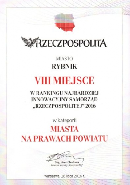 Rzeczpospolita po raz 12 przygotowała ranking samorządów, w którym swoje miejsce znalazł również Rybnik. Miasto dobrze wypadło w Rankingu Głównym, zajmując także 8 miejsce w klasyfikacji Innowacyjny Samorząd i 18 w kategorii Samorząd Europejski.