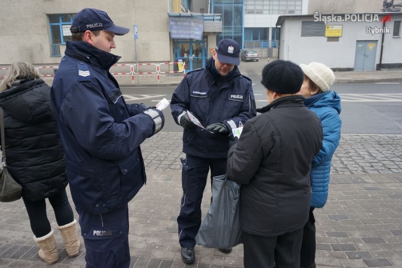 Wczoraj przed południem mieszkańcy Rybnika mogli w okolicy przystanków autobusowych spotkać policjantów, którzy wraz z życzeniami zdrowych i bezpiecznych świąt, wręczali napotkanym osobom ulotki ostrzegające przed kieszonkowcami. Dbając o bezpieczeństwo pieszych, mundurowi przypominali również o noszeniu odblasków oraz zachęcali, aby z odblasków korzystać zawsze, a nie tylko w sytuacji, gdy za ich brak grozi mandat.