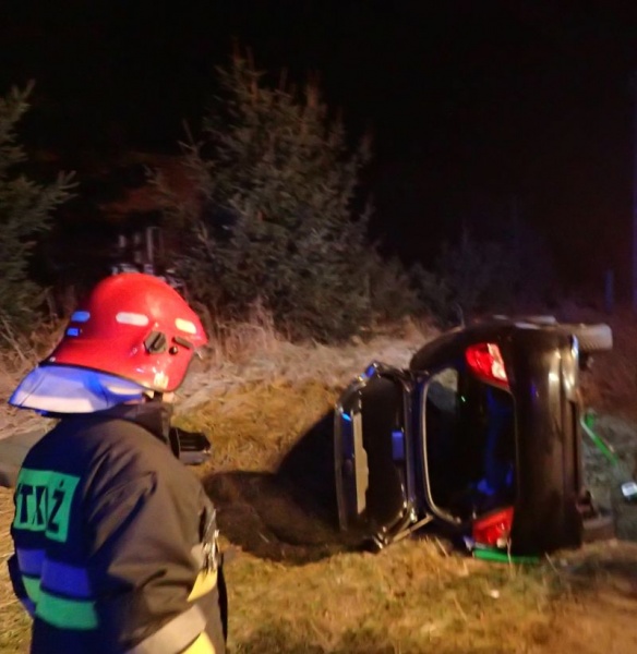W chwili dojazdu zastępów straży pożarnej na miejscu zdarzenia obecna była policja i zespół ratownictwa medycznego. Przytomna poszkodowana znajdowała się w pojeździe, który był przewrócony na bok. Działania zastępu polegały na zabezpieczeniu miejsca zdarzenia i ewakuacji poszkodowanej z pojazdu. Osobę poszkodowaną zabrał Zespół Ratownictwa Medycznego do szpitala. Akcja straży pożarnej trwała godzinę.