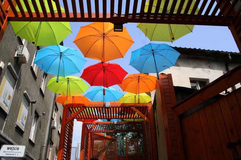 Instalacja z różnokolorowych parasolek dopełniła efekt remontu traktu łączącego ul. Powstańców Śląskich z ul. Na górze. Dróżka Profesora Libury, ważny fragment rybnickiego śródmieścia, zyskała nowe oblicze.
