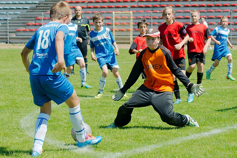 Sobotnie przedpołudnie na boisku OSiR-u w Raciborzu przebiegało pod znakiem futbolu w wykonaniu młodzików raciborskiej Unii, oraz Dębu Dębieńsko. Ekipa gości, choć starała się jak mogła, nie potrafiła zagrozić bramkce młodych Unitów. Gracze gospodarzy pewnie aplikowali przyjezdnym kolejne gole. Prócz tego stworzyli wiele sytuacji, które zakończyły się trafieniem w słupek lub poprzeczkę. W spotkaniu tym padło ogółem siedem bramek, a hat-trickiem popisał się kapitan raciborzan Mateusz Rajda.