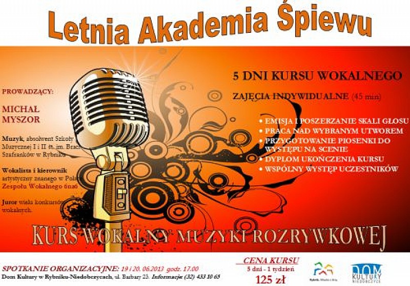Zapraszamy na Kurs wokalny muzyki rozrywkowej! Letnia akademia śpiewu już latem w DK Niedobczyce.