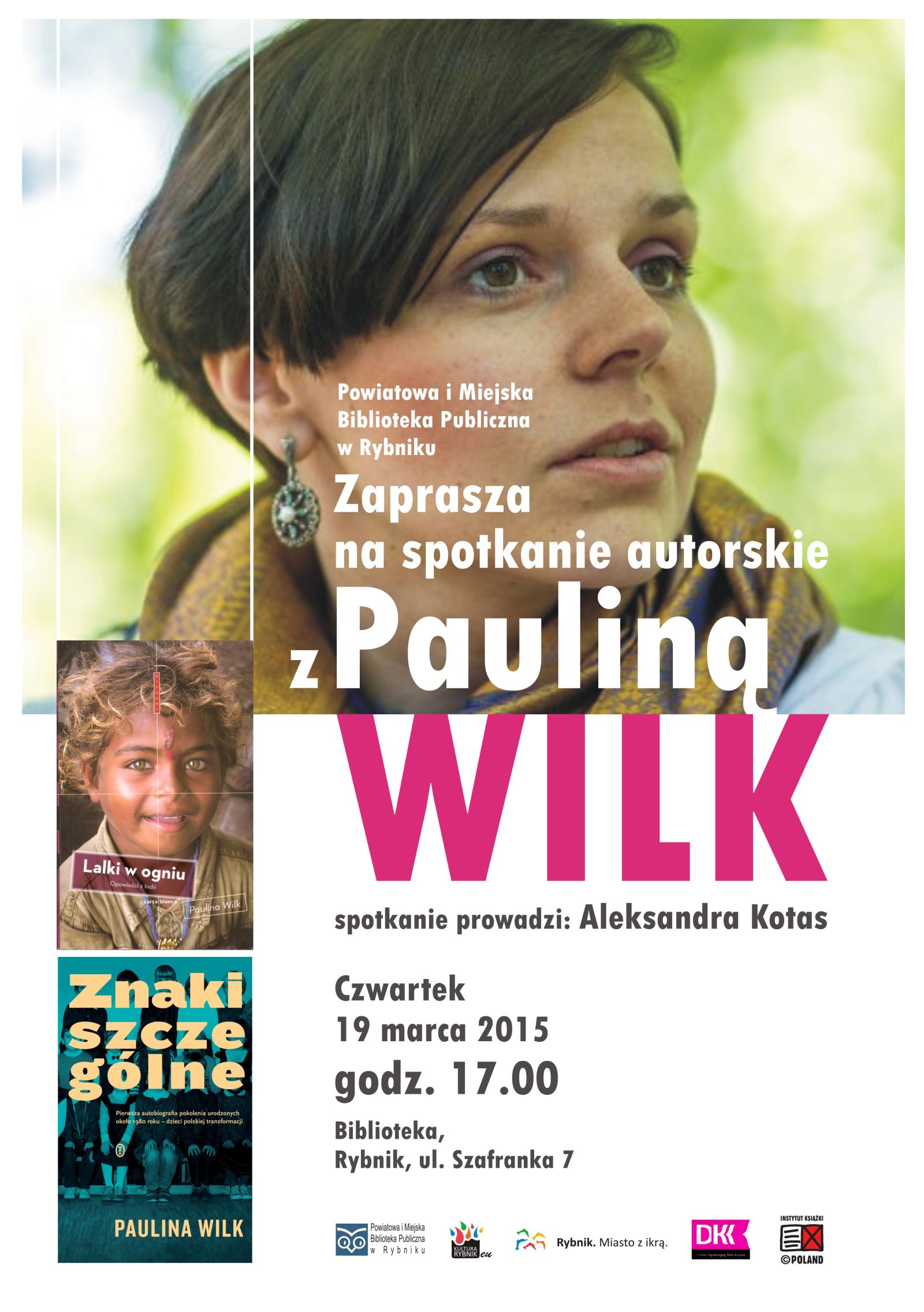 Powiatowa i Miejska Biblioteka Publiczna w Rybniku serdecznie zaprasza na spotkanie autorskie z Pauliną Wilk.