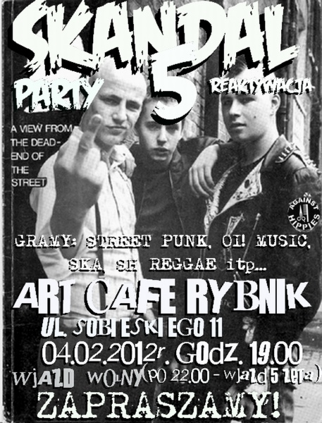 W sobotę 4 lutego w rybnickim Art. Cafe (ul. Sobieskiego 11) odbędzie się impreza pod kryptonimem Skandal Party 5 – Reaktywacja!