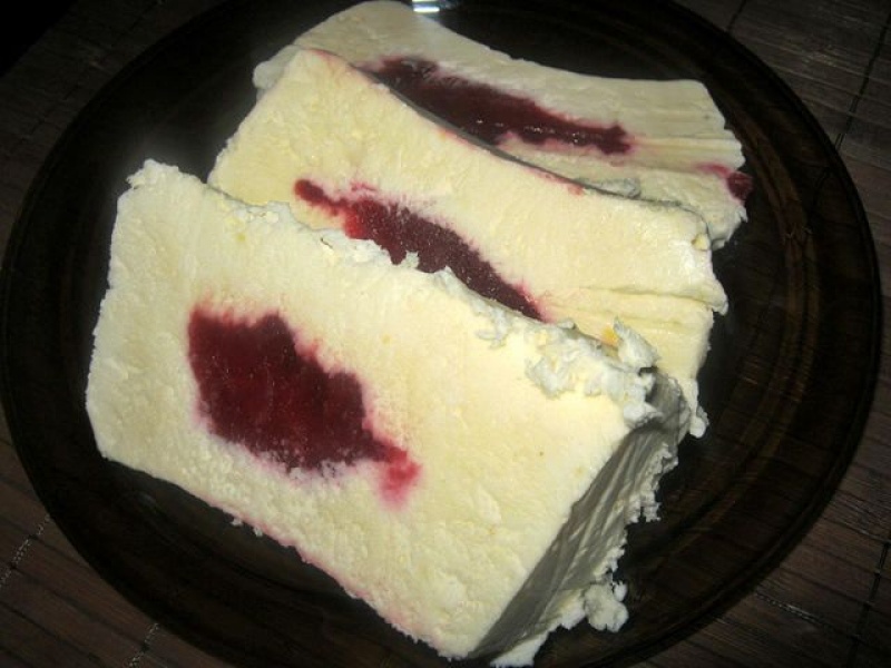 Do masy zamiast owoców, można dać (tak jak w tym przypadku) mus owocowy lub zimny sos czekoladowy.