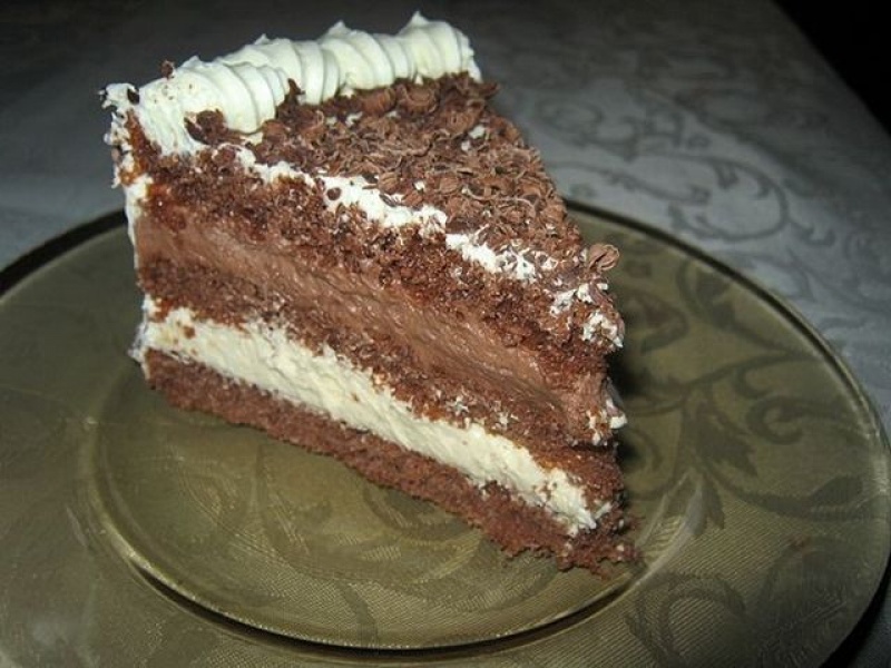 Całość przykryć ostatnim plackiem ozdabiając z masą z kremówki.