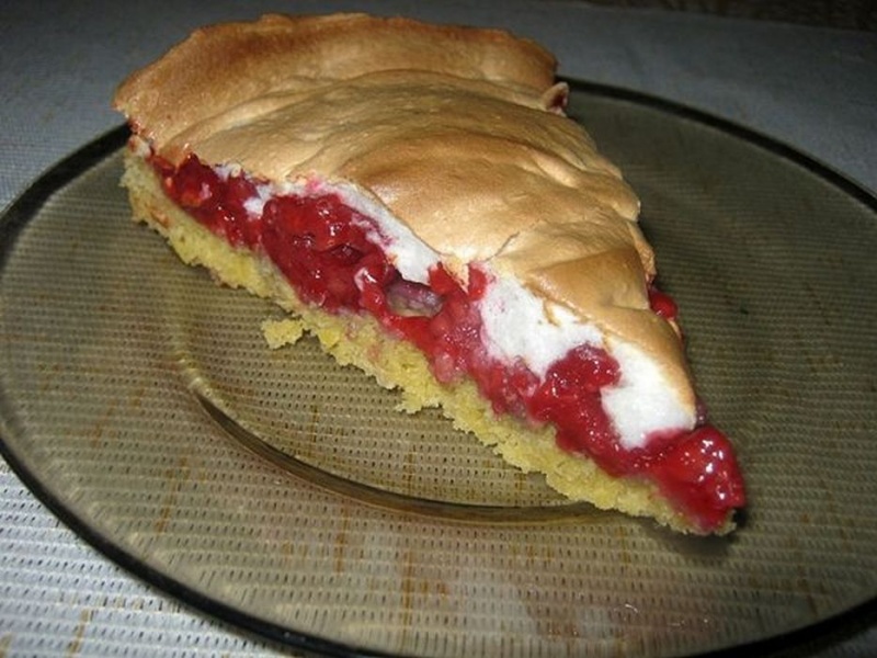 Na spód ciasta ułożyć maliny, po czym wyłożyć ubitą bezę.