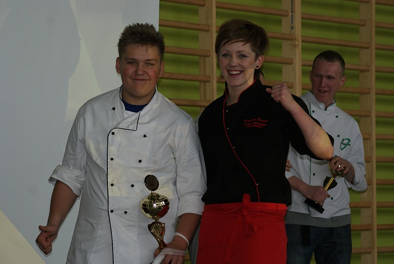 Zwyciężyli uczniowie z Zespołu Szkół Ekonomiczno-Usługowych w Rybniku: Martyna Rusin z klasy IV TD i Daniel Ząbik z klasy I GZ. Zadaniem młodych kucharzy było przygotowanie w ciągu 90 minut trzech porcji dania głównego na bazie karkówki i kaszy pszenno-gryczanej Pesso. Prace konkursowe oceniało jury w składzie: przewodniczący Krzysztof Gawlik- Executive Chef, ekspert kulinarny RM Gastro, Tomasz Nowak- doradca kulinarny RM Gastro, Damian Nielaba- szef kuchni restauracji Rezydencja pod wiatrakiem, Bogusław Kubaszek- szef kuchni restauracji Stary Zdrój z Jastrzębia Zdroju, Barbara Duda- przedstawiciel firmy Agro Wodzisław i Wiesław Wróblewski- prezes Beskidzkiego Klubu Kulinarnego.
