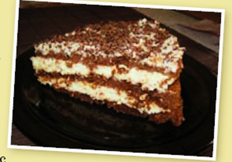 Wszystko zagnieść i podzielić na trzy cześci. Każdą część rozwałkować (najlepiej między dwoma arkuszami papieru pergaminowego). Dużą tortownicę o średnicy 28 cm wyłożyć papierem pergaminowym. Upiec każdy placek oddzielnie w temp. 180° około 15 minut. Upieczone i ostudzone placki mocno nawilżyć posłodzoną herbatą z cytryną (lub alkoholem), po czym przekładać masą grysikową.