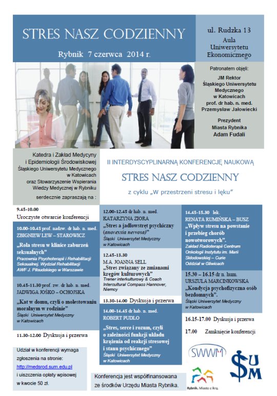 Negatywne skutki lęku i stresu stają się coraz powszechniej przyczyną chorób. Właśnie dlatego Śląski Uniwersytet Medyczny w Katowicach organizuje coroczne, otwarte konferencje naukowe poświęcone problematyce stresu i lęku, skierowane do szerokiego kręgu społeczeństwa. Odbywają się one w Rybniku, w auli Uniwersytetu Ekonomicznego przy ul. Rudzkiej 13.