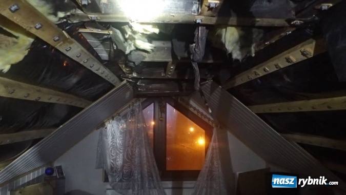 Pożar dachu w budynku jednorodzinnym